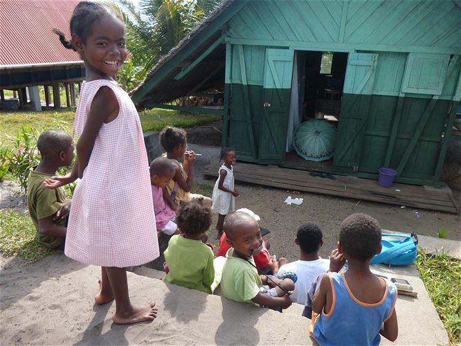 Arrivo a Mananjary alle 5, albeggia e sono già in molti per strada con le merci in equilibrio sul capo. Un pousse-pousse mi porta le valigie e io lo seguo a piedi. Mentre cammino, una macchinetta gialla di vetroresina, costruita in Madagascar, mi affianca: è l'autista di Tsara Zaza! Trasbordo i bagagli e in pochi minuti raggiungiamo il cancello della casa dei bambini.